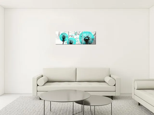 Štýlový obraz na plátne Púpavy v tyrkysovej farbe