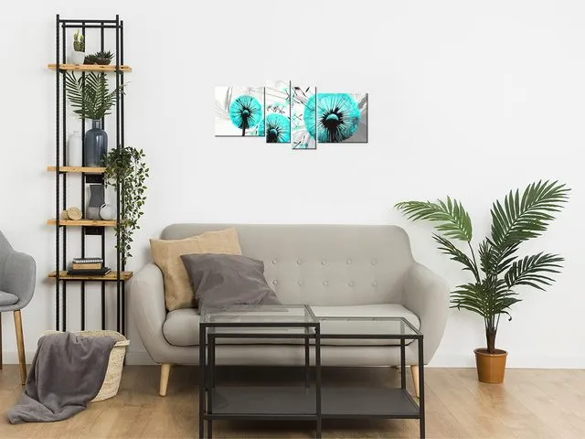4029A_4Q Štýlový obraz na plátne Púpavy v tyrkysovej farbe |
