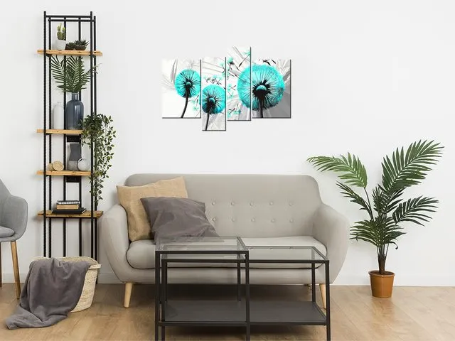 Štýlový obraz na plátne Púpavy v tyrkysovej farbe