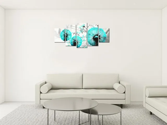 4029A_5D Štýlový obraz na plátne Púpavy v tyrkysovej farbe |