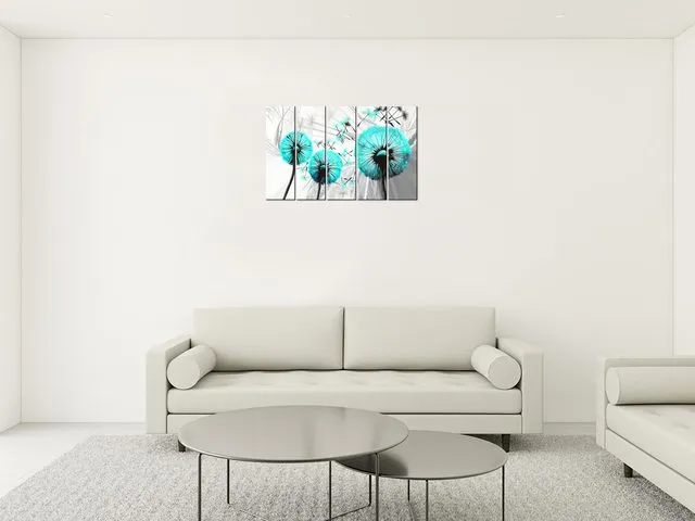 Štýlový obraz na plátne Púpavy v tyrkysovej farbe