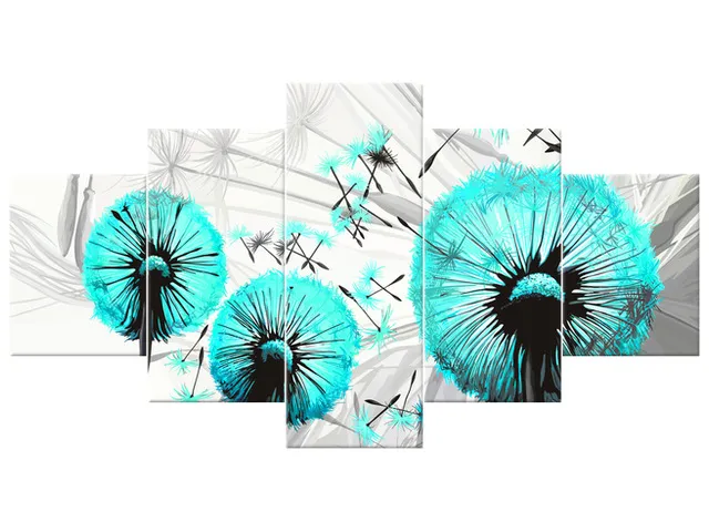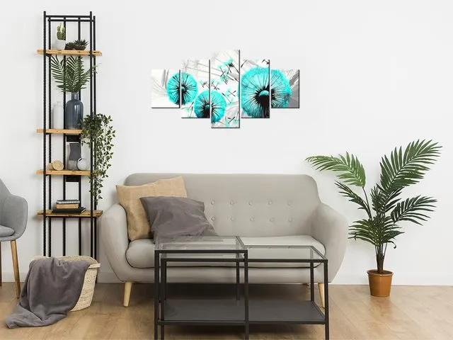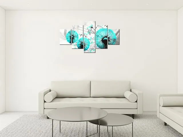 Štýlový obraz na plátne Púpavy v tyrkysovej farbe