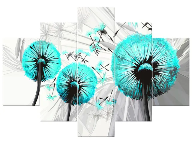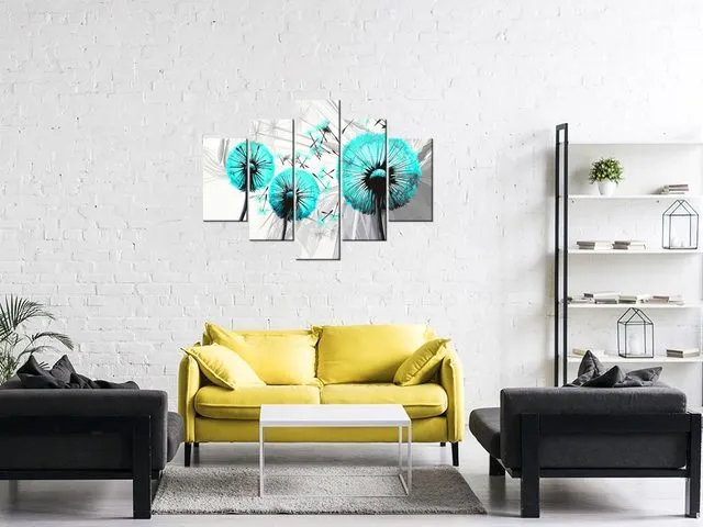 4029A_5D Štýlový obraz na plátne Púpavy v tyrkysovej farbe |
