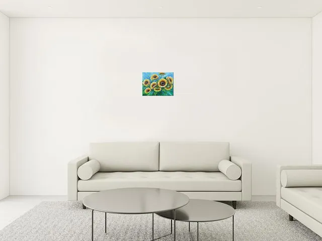 Štýlový obraz na plátne Slnečnice v modrej