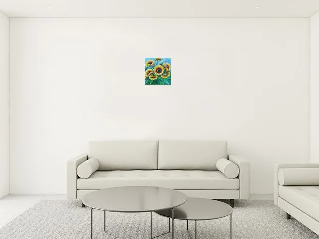 3571A_1E Štýlový obraz na plátne Slnečnice v modrej |