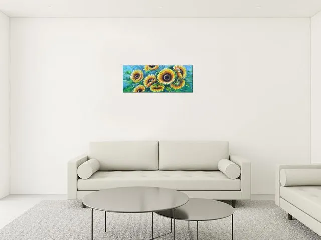 Úvod » Obrazy » Obrazy na plátne » Kvety » Štýlový obraz na plátne Slnečnice v modrej