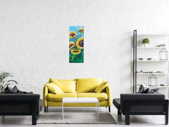 Úvod » Obrazy » Obrazy na plátne » Kvety » Štýlový obraz na plátne Slnečnice v modrej
