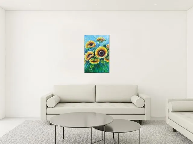 3571A_1N Štýlový obraz na plátne Slnečnice v modrej |