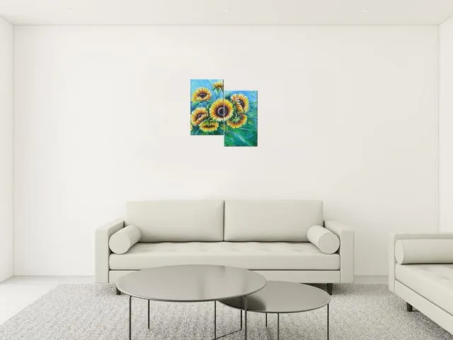 Štýlový obraz na plátne Slnečnice v modrej