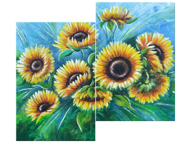 Úvod » Obrazy » Obrazy na plátne » Kvety » Štýlový obraz na plátne Slnečnice v modrej