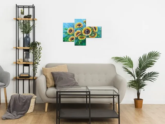 3571A_3J Štýlový obraz na plátne Slnečnice v modrej |