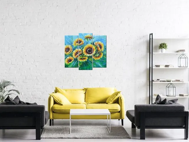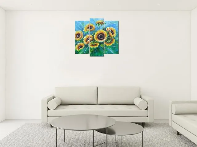 Úvod » Obrazy » Obrazy na plátne » Kvety » Štýlový obraz na plátne Slnečnice v modrej
