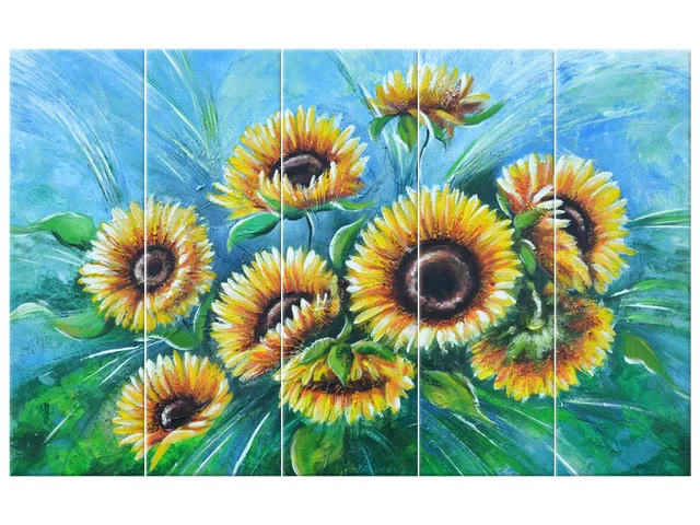 3571A_5D Štýlový obraz na plátne Slnečnice v modrej |