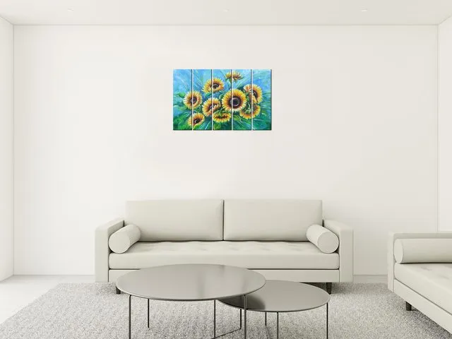 Úvod » Obrazy » Obrazy na plátne » Kvety » Štýlový obraz na plátne Slnečnice v modrej