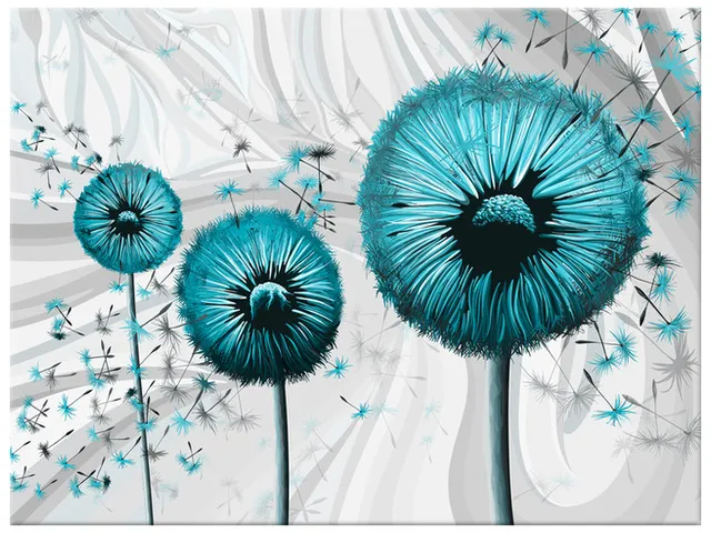 Úvod » Obrazy » Obrazy na plátne » Kvety » Štýlový obraz na plátne Tyrkysové púpavy 3