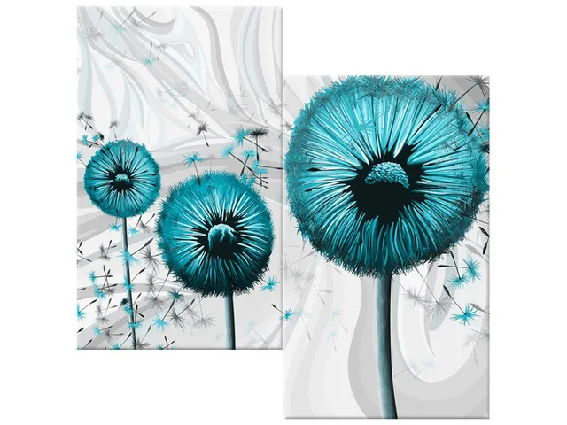 Úvod » Obrazy » Obrazy na plátne » Kvety » Štýlový obraz na plátne Tyrkysové púpavy 3