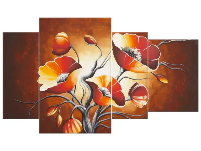 4691A_4H Štýlový obraz na plátne Vlčie maky v bronzovej farbe |