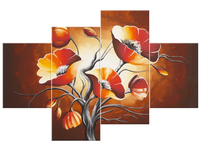 4691A_4H Štýlový obraz na plátne Vlčie maky v bronzovej farbe |