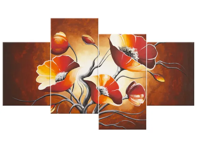 4691A_5H Štýlový obraz na plátne Vlčie maky v bronzovej farbe |