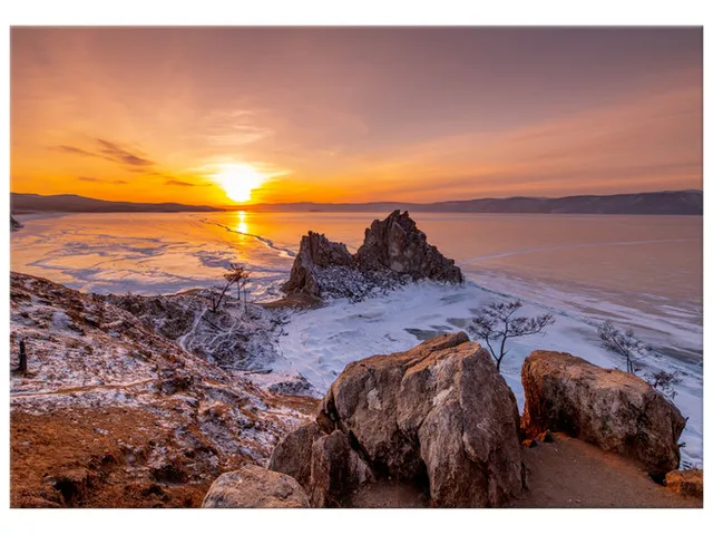 5586A_2J Štýlový obraz na plátne Západ slnka nad Bajkalom |