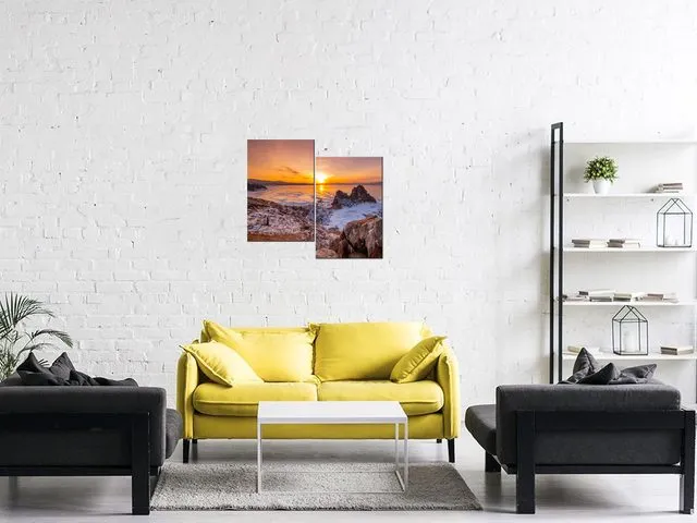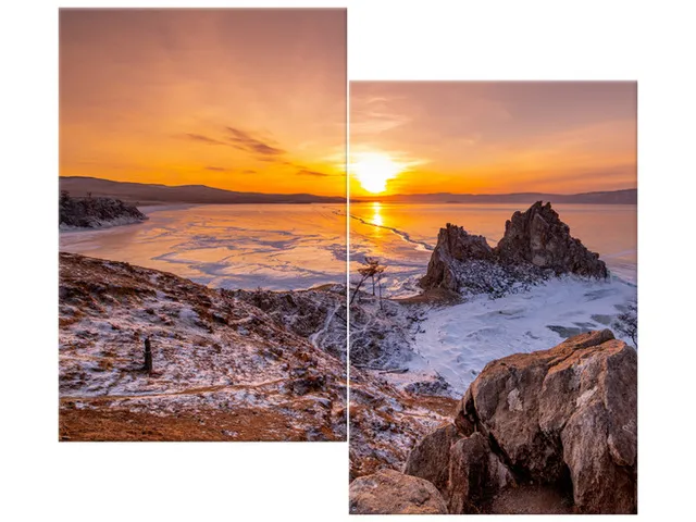 5586A_2J Štýlový obraz na plátne Západ slnka nad Bajkalom |
