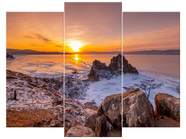 5586A_3K Štýlový obraz na plátne Západ slnka nad Bajkalom |