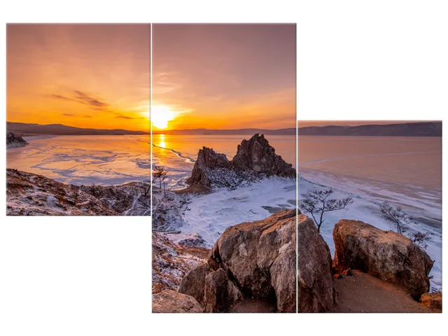 5586A_3V Štýlový obraz na plátne Západ slnka nad Bajkalom |