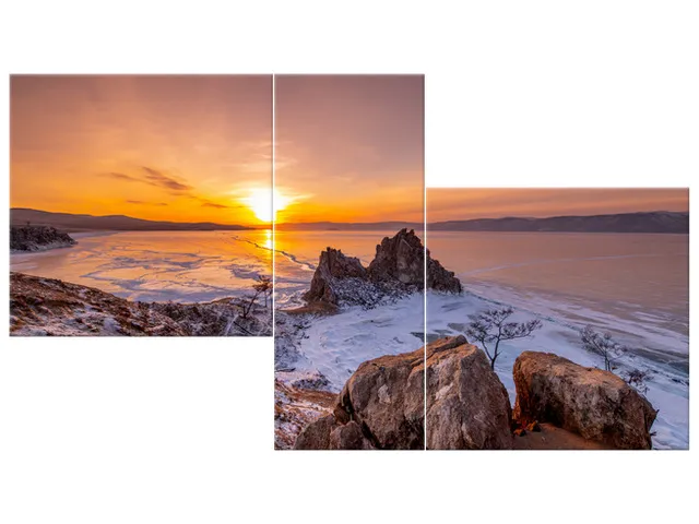 5586A_3V Štýlový obraz na plátne Západ slnka nad Bajkalom |