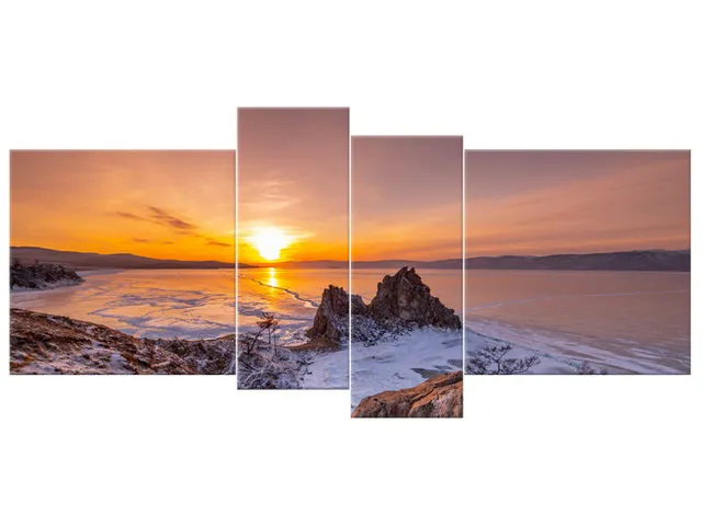 5586A_4Q Štýlový obraz na plátne Západ slnka nad Bajkalom |