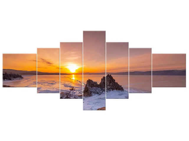 5586A_6E Štýlový obraz na plátne Západ slnka nad Bajkalom |