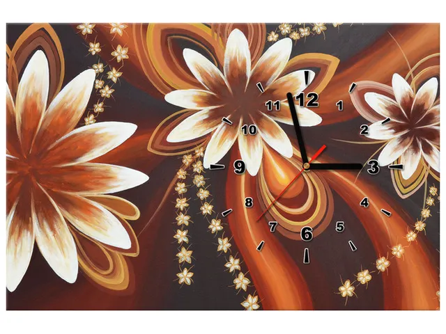 Úvod » Obrazy » Obrazy s hodinami » Štýlový obraz na plátne s hodinami Krútiace sa kvety