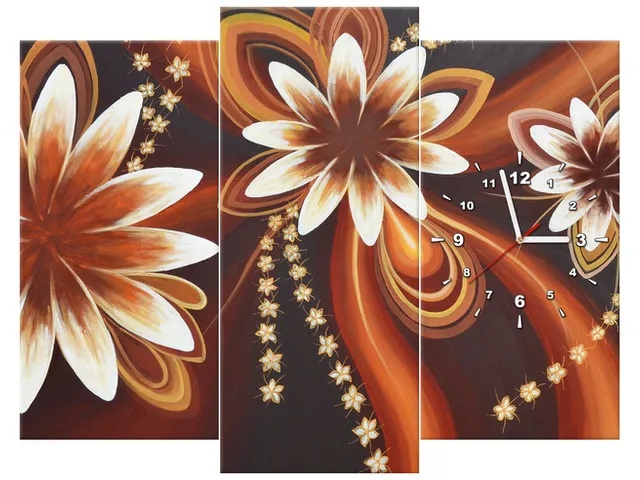 Úvod » Obrazy » Obrazy s hodinami » Štýlový obraz na plátne s hodinami Krútiace sa kvety