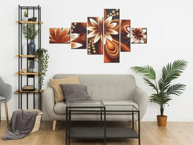 Úvod » Obrazy » Obrazy s hodinami » Štýlový obraz na plátne s hodinami Krútiace sa kvety