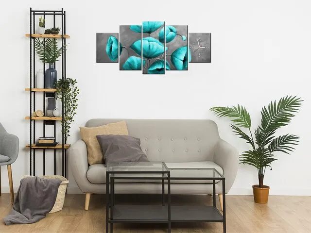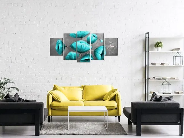 Barion Pixel Štýlový obraz na plátne s hodinami Modré kvety
