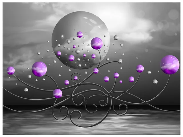 5588A_1D Štýlový obraz na stenu Fialové gule na sivom pozadí |