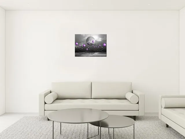 Úvod » Obrazy » Obrazy na plátne » Štýlový obraz na stenu Fialové gule na sivom pozadí