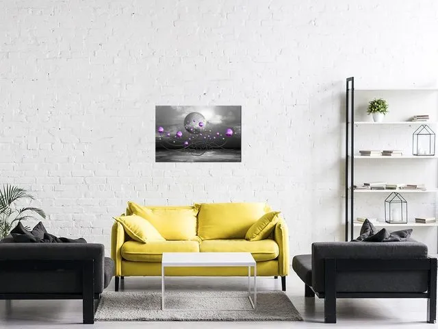 Úvod » Obrazy » Obrazy na plátne » Štýlový obraz na stenu Fialové gule na sivom pozadí