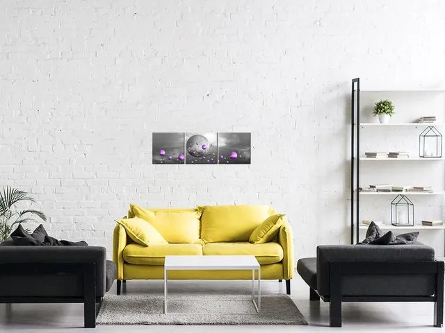 Úvod » Obrazy » Obrazy na plátne » Štýlový obraz na stenu Fialové gule na sivom pozadí
