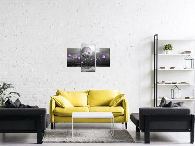 Úvod » Obrazy » Obrazy na plátne » Štýlový obraz na stenu Fialové gule na sivom pozadí