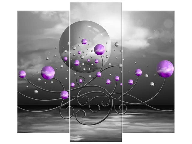 5588A_3M Štýlový obraz na stenu Fialové gule na sivom pozadí |