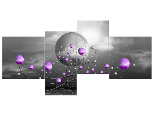 5588A_5D Štýlový obraz na stenu Fialové gule na sivom pozadí |