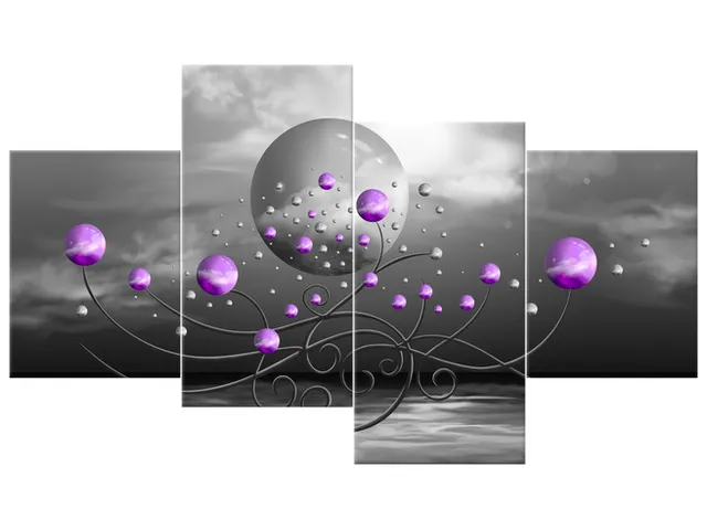5588A_5D Štýlový obraz na stenu Fialové gule na sivom pozadí |