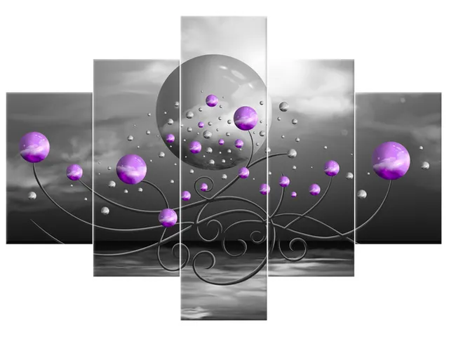 5588A_5D Štýlový obraz na stenu Fialové gule na sivom pozadí |