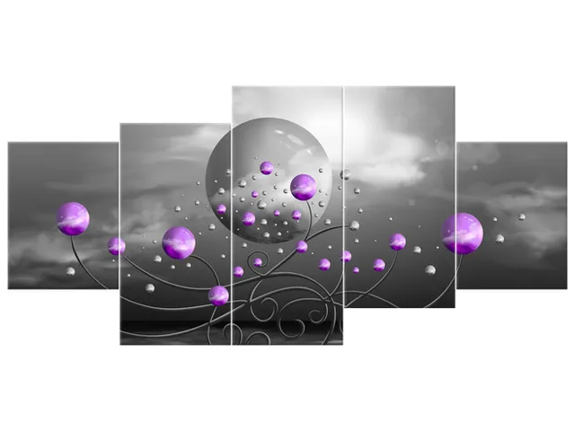 5588A_5D Štýlový obraz na stenu Fialové gule na sivom pozadí |