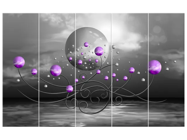 5588A_5F Štýlový obraz na stenu Fialové gule na sivom pozadí |