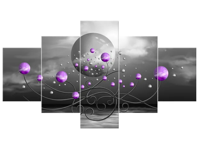 5588A_5D Štýlový obraz na stenu Fialové gule na sivom pozadí |
