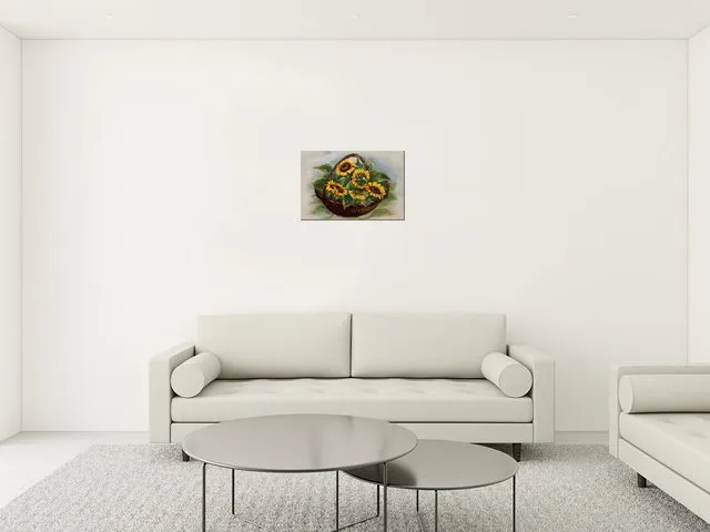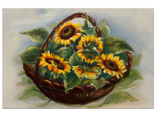Úvod » Obrazy » Obrazy na plátne » Kvety » Štýlový obraz na stenu Košík slnečníc