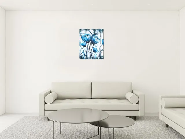 3869A_1Q Štýlový obraz na stenu Kytica modrých makov |