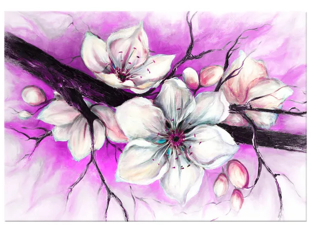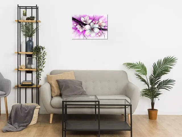 4468A_2A Štýlový obraz na stenu Puky višne vo fialovej |