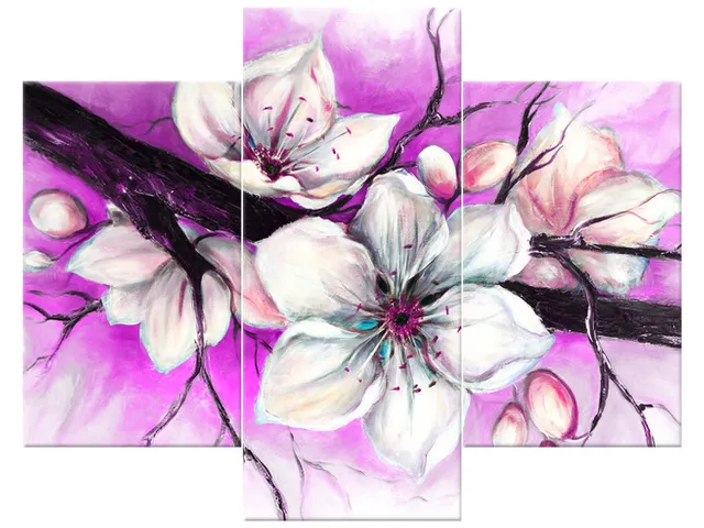 4468A_3M Štýlový obraz na stenu Puky višne vo fialovej |